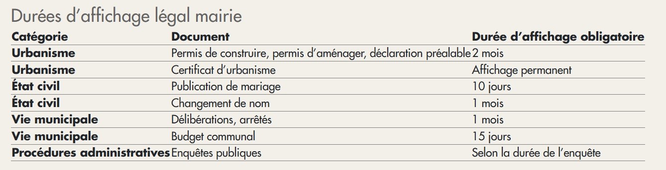 Une mise à jour de l'affichage légal est effectuée régulièrement. Cliquer ci-contre ►Durée affichage légal.